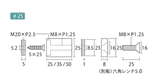 化粧ビスセット(ステンレス製) 屋外用 OSフラットタイプ EPO-OS25F-35 VT加工(非鏡面)