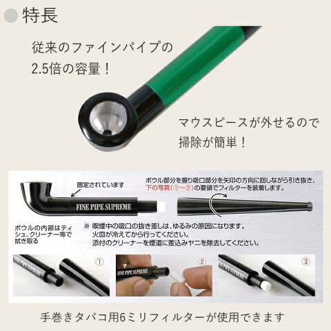 商品説明FINE PIPE SUPREME刻み幅の細いパイプたばこや手巻きたばこ(シャグたばこ)用のパイプです。