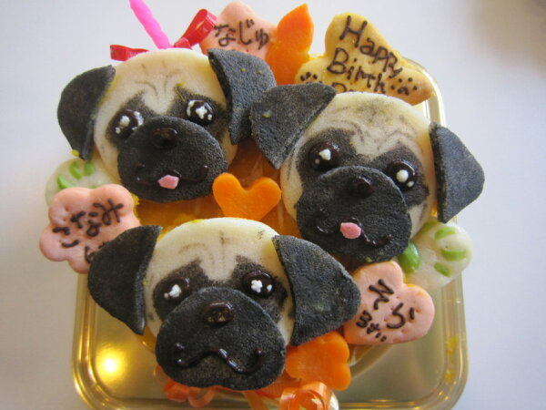 商品名 似顔絵 犬用ケーキ 18cm 米粉仕様 顔3個バージョン 商品 説明 ・下ごしらえからデコレーションに至るまで、貴方の大切なワンちゃんの為にスタッフが心を込めて愛情を込めてお作りいたします。